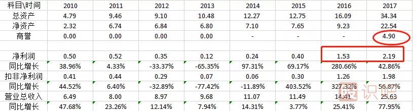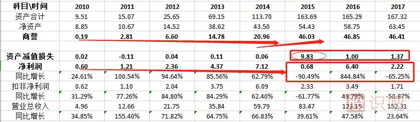商譽:2010年的0.19億,到2014年的20.96億元,增長100倍以上。