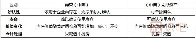 我國商譽資產和無形資產的區別: