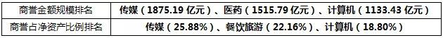 2018年Q3前三季度商譽前三行業