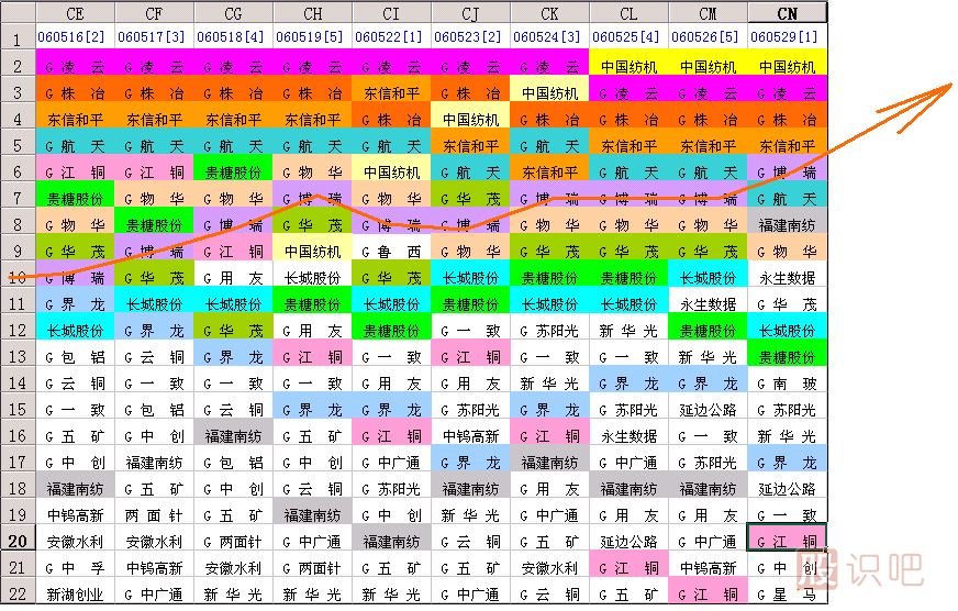 除此以外,還有莊家做莊技術(shù)不佳或收集籌碼時走漏風聲等技術(shù)性原因,也會影響做莊效果。為了提高選股準確性,我們在使用沙盤的同時,要結(jié)合K線的形態(tài)。這道理容易理解:如心電圖有詳細的心臟運行數(shù)據(jù),基本上描述了心臟的狀況。但是醫(yī)生在手術(shù)前,必然會用B超或X光,對心臟的形態(tài)作詳盡的了解。在(圖275-1)沙盤中的個股挺多,如G凌云、中國紡機、G航天和G博瑞等等。它們在沙盤中的位置都挺高,說明做多能量很強。但是,這些個股的做多能量是初強,中強還是末強?這必須對照個股的K線形態(tài)來分析。