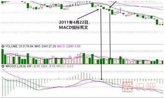 如果在均線和MACD指標(biāo)死叉的同時(shí),均量線也完成了死叉,則說明隨著股價(jià)下跌速度加快。