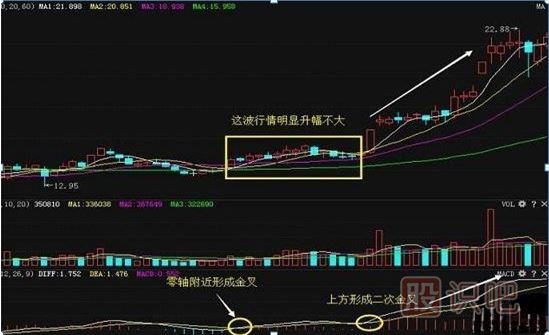如果在均線和MACD指標(biāo)金叉的同時(shí),均量線也完成了金叉,則說明隨著股價(jià)上升速度加快。
