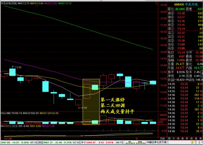 2.漲停當(dāng)日和次日回調(diào)的量應(yīng)該基本持平。