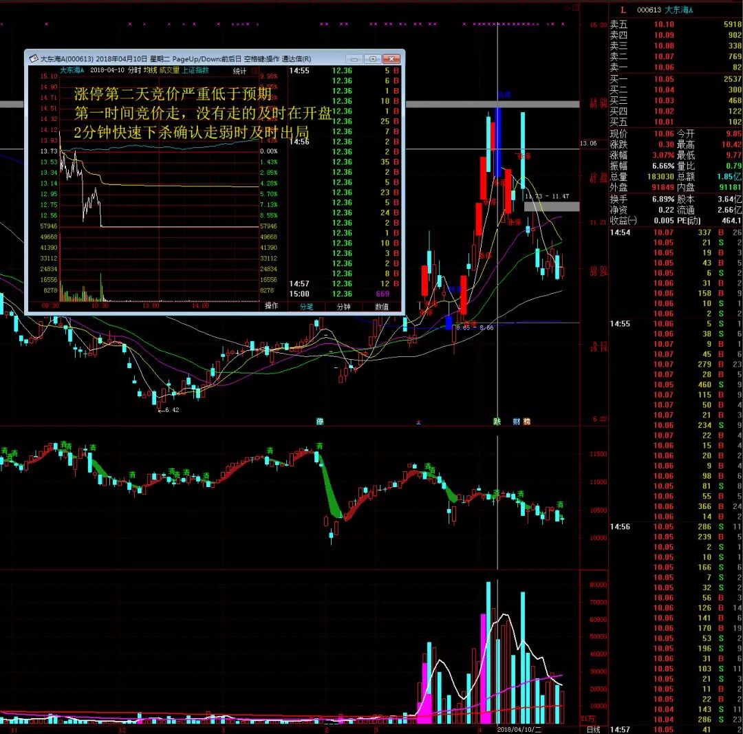 (2)小幅高開3%左右的幅度,開盤就下跌,急速下跌,這種就很關鍵,基本是如果競價沒有處理,就及時在跌破漲停