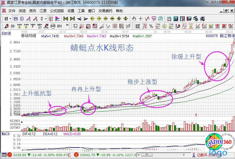 如圖2所示,金發科技(600143)在30日均線的壓制下大幅下跌,該股在9元一帶形成兩陽夾一陰K線組合。兩陽夾一陰K線組合是在股價剛突破30日均線不久后出現,明顯是多方拉升股價的信號,投資者可以積極跟進。