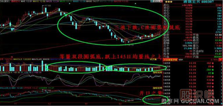 二、成交量圓弧底反彈技術應用:酒鋼宏興(600307)
