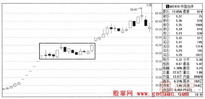 如圖是2007年中國遠洋走勢圖,在圖中我們可以看到,中國遠洋在經過一輪大漲之后,橫盤休整做了矩形整理,之后又出現了新一輪拉升,最終從20元左右一直上漲至最高64元。