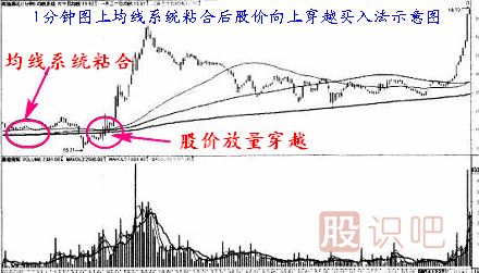 均線買入法則實(shí)戰(zhàn)圖解均線買入法則實(shí)戰(zhàn)圖解一、1分鐘圖均線買入法則第一種均線系統(tǒng)粘合后股價向上穿越買入法技術(shù)特征:1)1分鐘圖屬于最小的分鐘分...