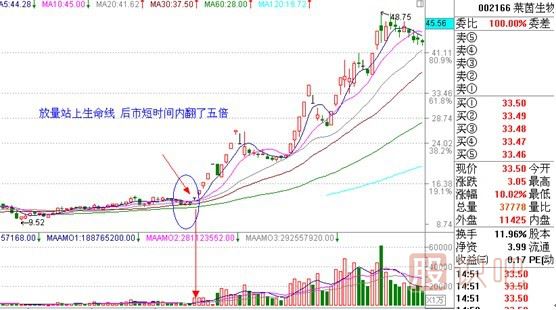 第二,股價(jià)需放量突破均線密集纏繞。這點(diǎn)是關(guān)鍵,均線走平意味著多空勢(shì)均力敵,多為主力在此吸籌階段。放量突破意味主力拉升股價(jià)已經(jīng)啟動(dòng),打蛇打七寸,這個(gè)地方買進(jìn)是掐住了股價(jià)啟動(dòng)的時(shí)空關(guān)鍵點(diǎn)。